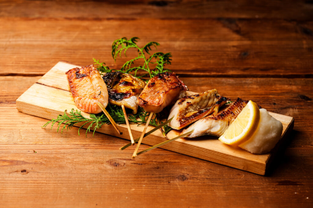 ・炭火焼き大トロサーモンハラスとイクラの親子焼き串